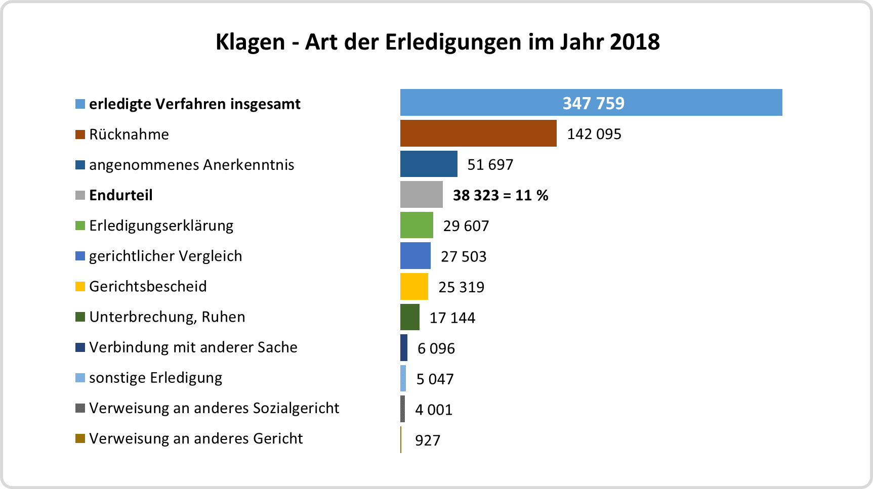 Aus dem folgenden Diagramm ergibt sich die Art der Erledigung im Hinblick auf die insgesamt im Jahr 2018 erledigten Klageverfahren: